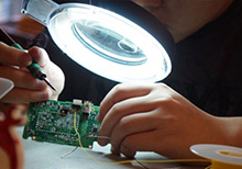 Инженер сервис центра исполняет работу: заменяет испорченную деталь исправной оригинальной частью